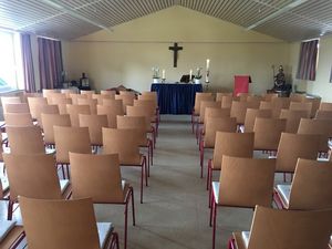 In diesem Zeitraum finden alle Gottesdienste in der Notkirche statt, die im Pfarrsaal eingerichtet wurde. Neben dem Sonntagsgottesdienst um 09.30 Uhr und den beiden Werktagsmessen mittwochs und freitags um 18.30 Uhr wird wegen der begrenzten Raumkapazität des Saals an jedem Samstag eine zusätzliche Vorabendmesse um 18.30 Uhr angeboten. Auch andere Gottesdienste wie das monatliche Friedensgebet, die Maiandacht oder das Totengebet finden in den kommenden Monaten dort statt.